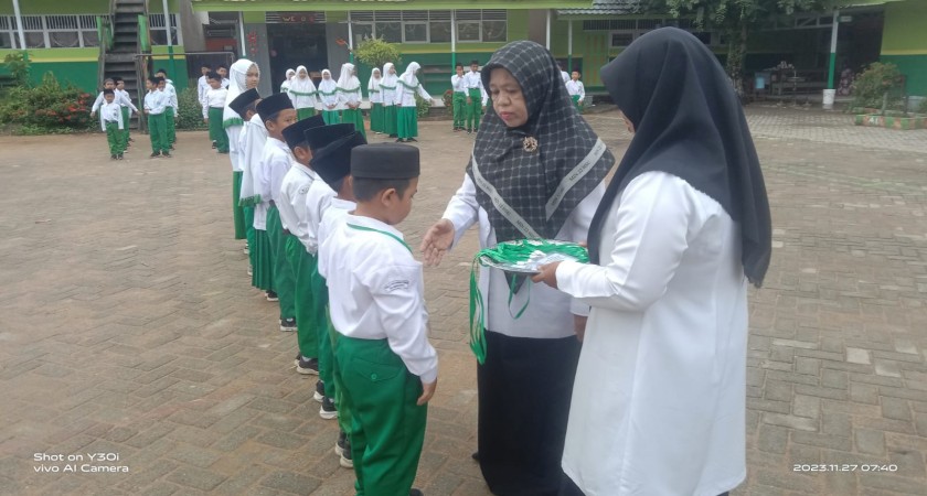 Amuntai (MIN 22 HSU) – Madrasah Ibtidaiyan Negeri (MIN) 22 Hulu Sungai Utara (HSU) melaksanakan Asesmen Sumatif Tengah Semester (ASTS) Ganjil Tahun 2023/2024 dan ditandai dengan pengalungan tanda peserta, di halaman MIN 22 HSU Senin (27/11/23).