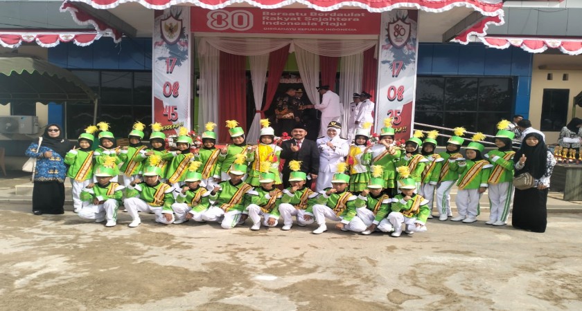 Drumband MIN 22 HSU Semarakkan Upacara HUT RI ke-80 di Amuntai Utara